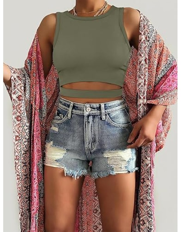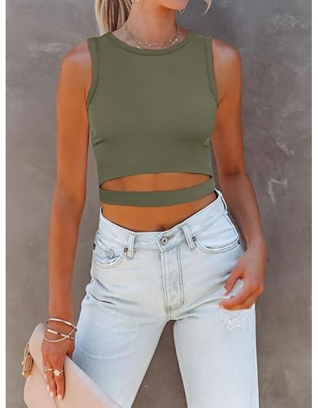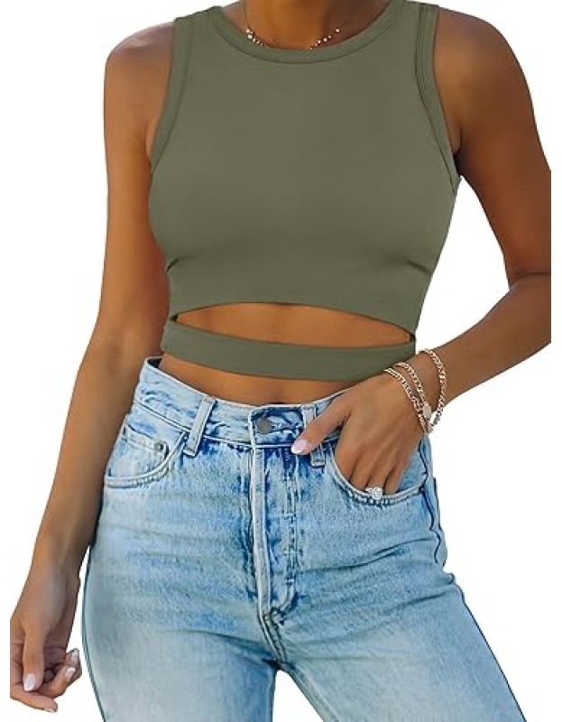 ANRABESS Women Tank Tops High Neck Sleeveless Sexy Cutout Racer Back Going Out Crop Tops Shirts Summer Y2K Outfits